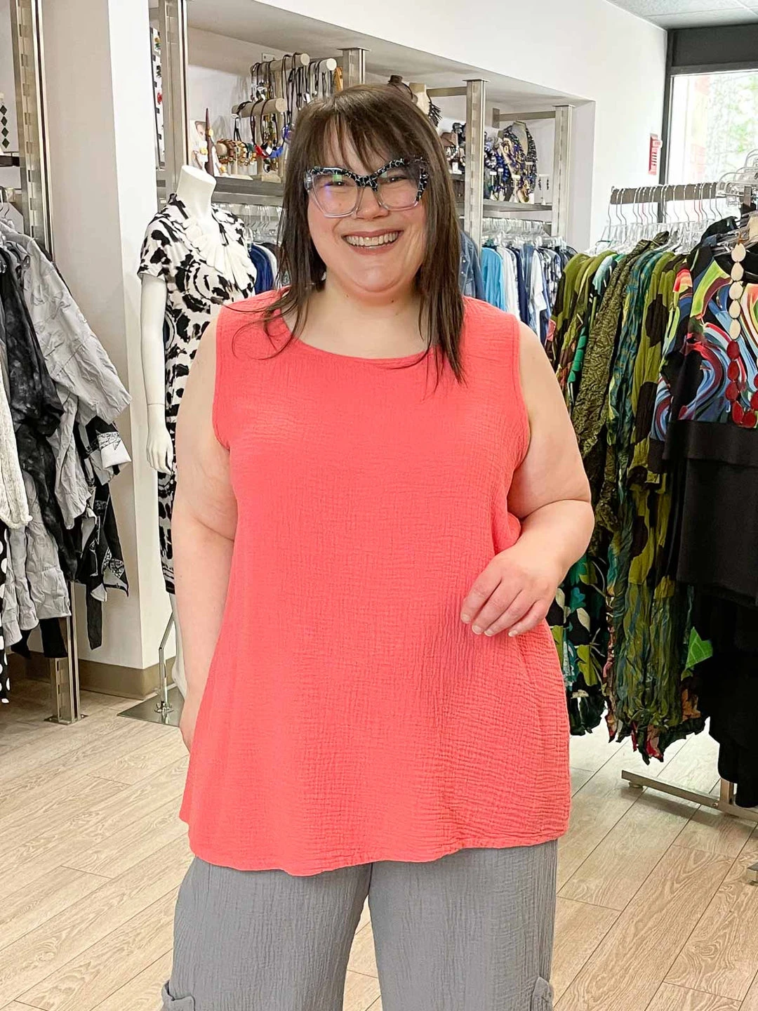 Bryn Walker’s Pira Tank is the perfect layering piece, with a longer length straighter a-line body and round neckline.