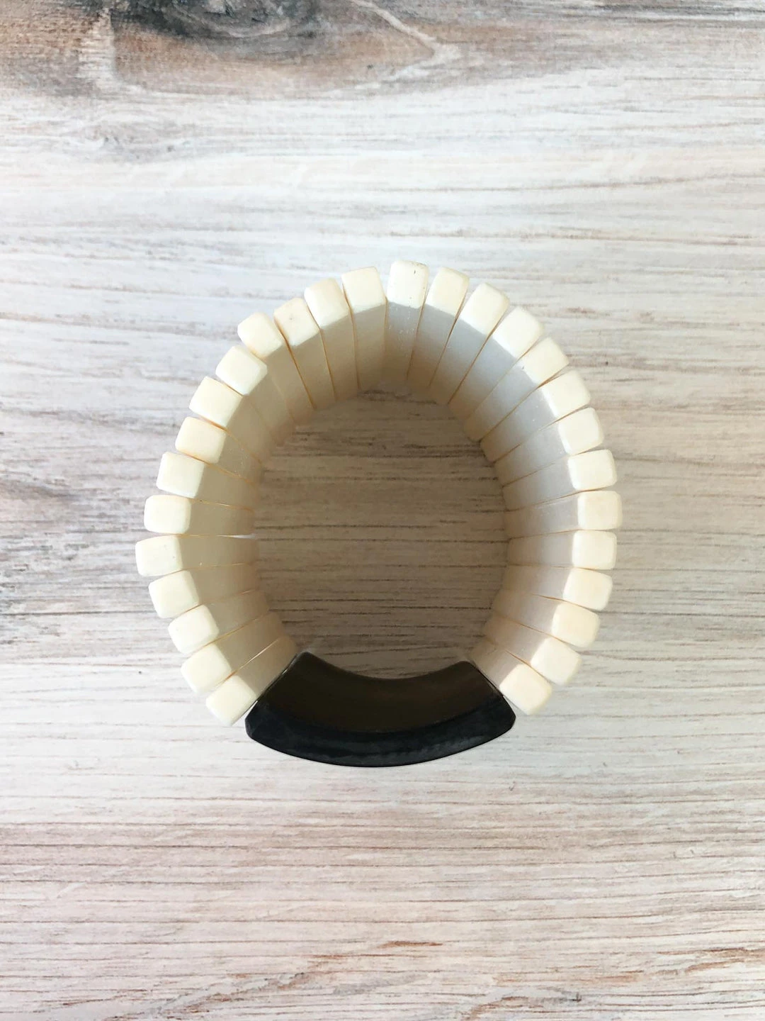 CATHs Jewelry Matchstick Rectangle Horn Cuff, Bone/Grey