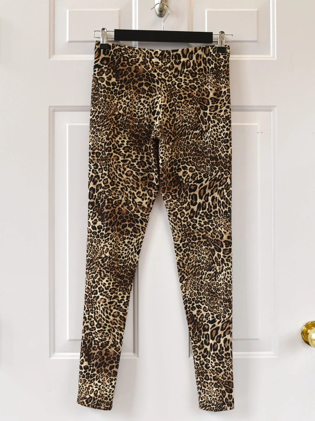 Perfect for fall and winter, these longer full length leggings from Comfy USA are in a rich leopard print light sweater knit. Pull on stretch waist.