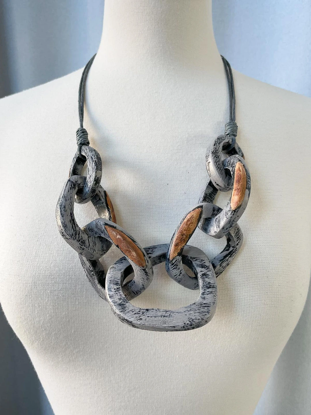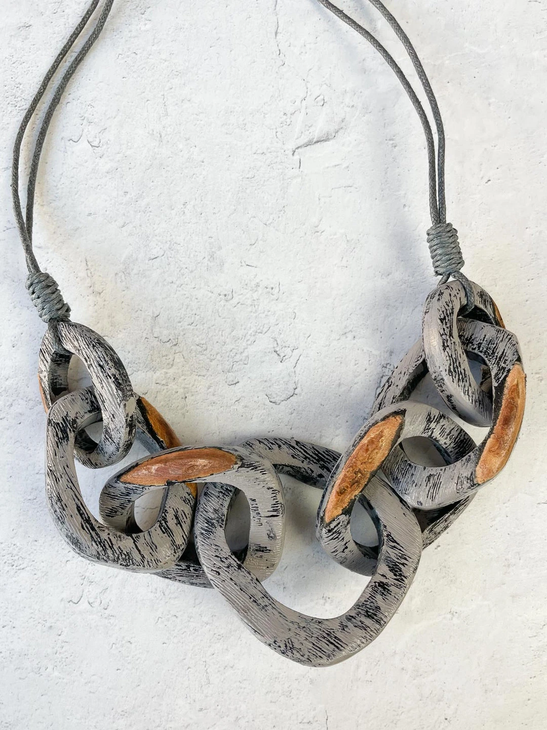Escape From Paris Escape From Paris Chunky Wooden Rings Necklace, Grey