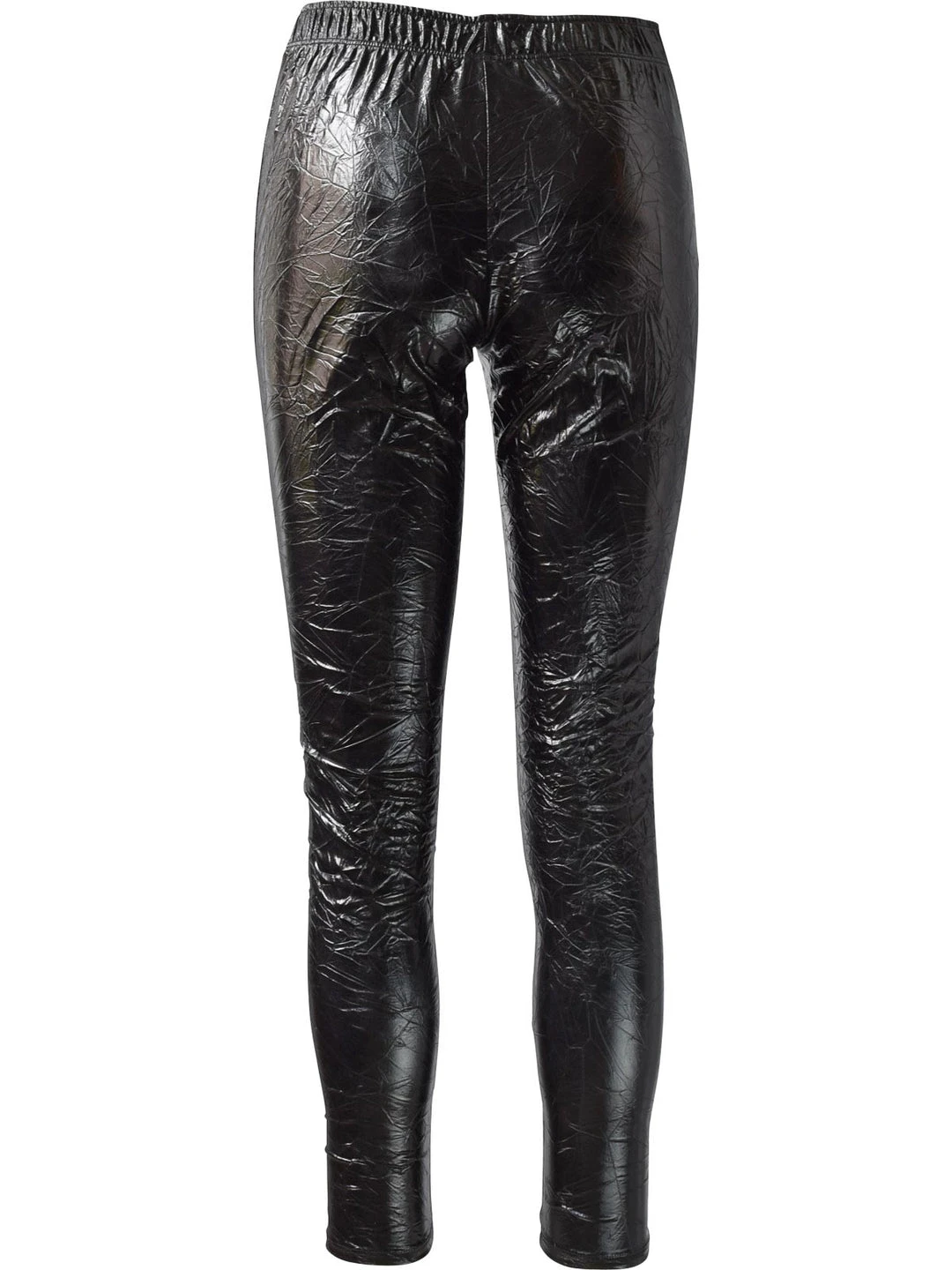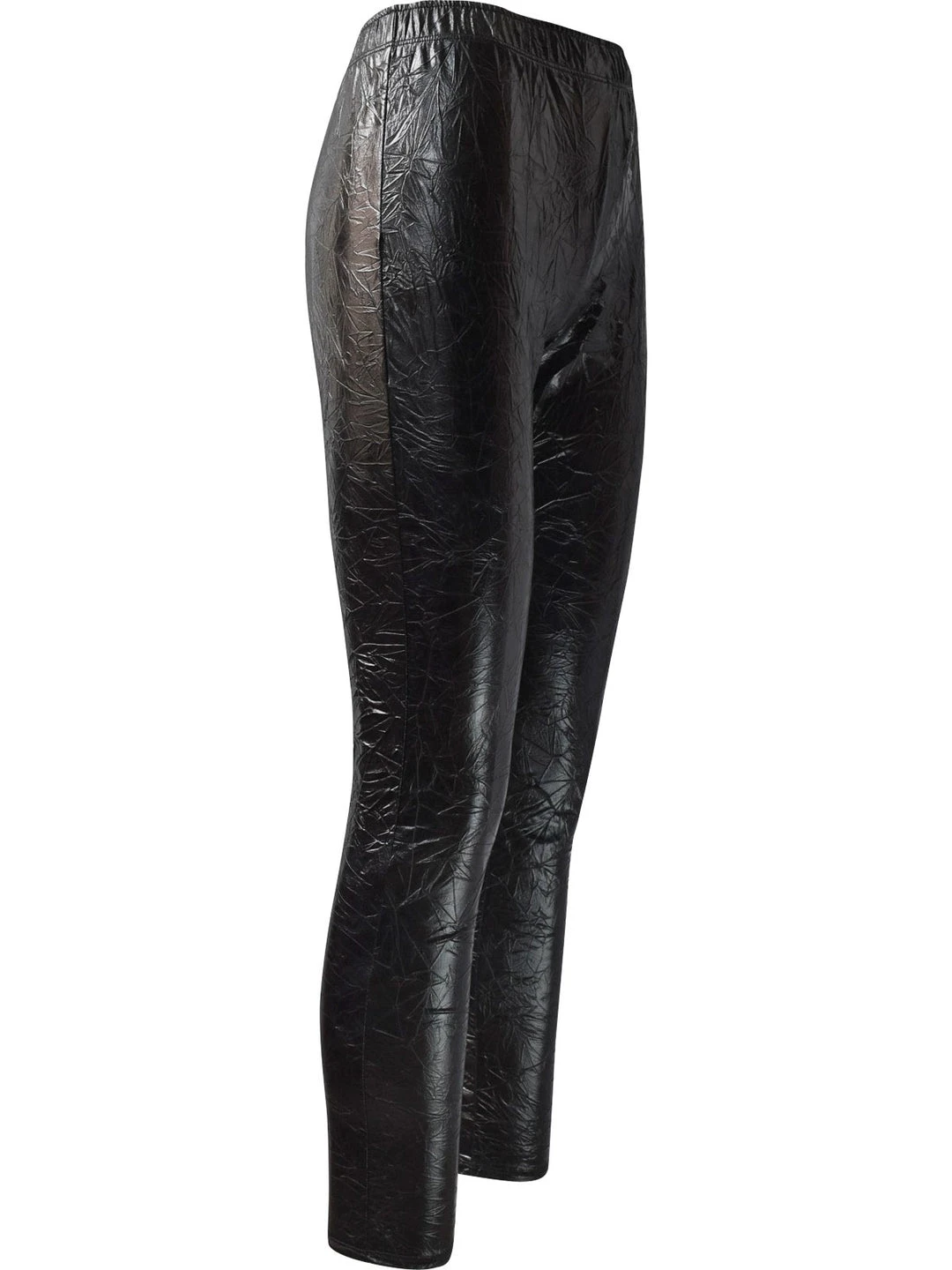 These edgy legging by IC Collection stand out in a funky crushed faux leather look. Skinny legs with pull on elastic waist.