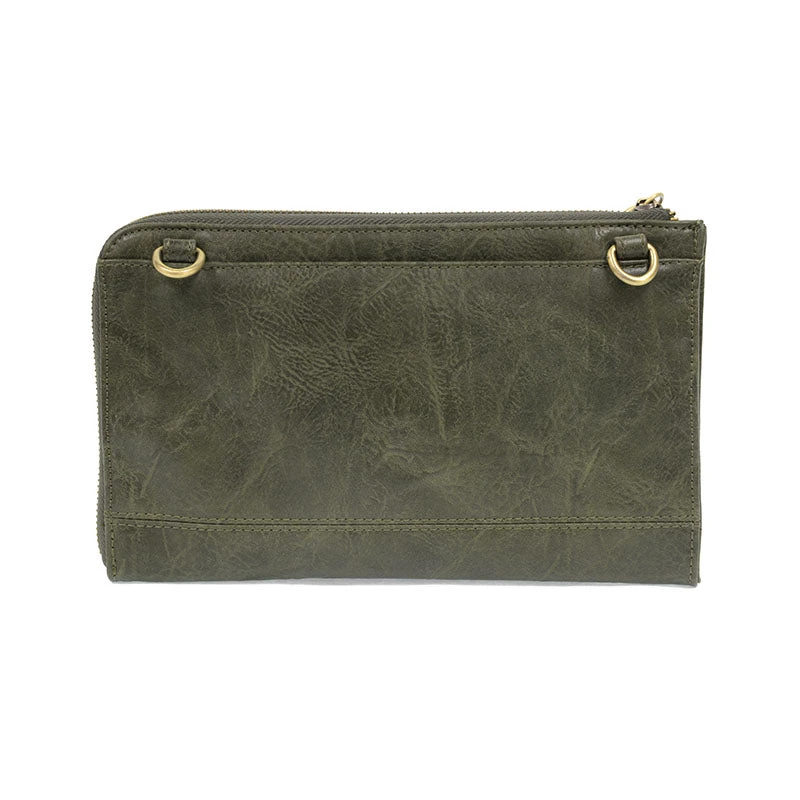 Karina combines sleek styling with uber-organization in a beautiful antique look vegan leather! The ultimate in versatility, this bag can be worn as a crossbody, carried as a clutch or as a wristlet. The included bonus wallet with credit card slots, ID window, zippered change pocket and billfold will keep your organized on the go and can be carried separately.