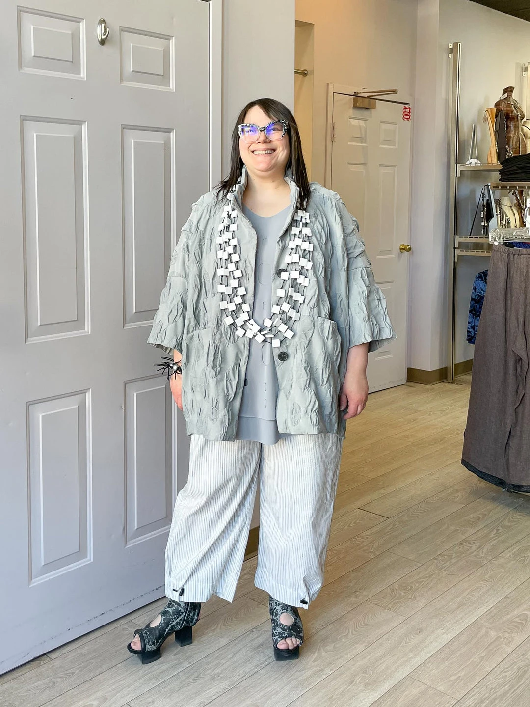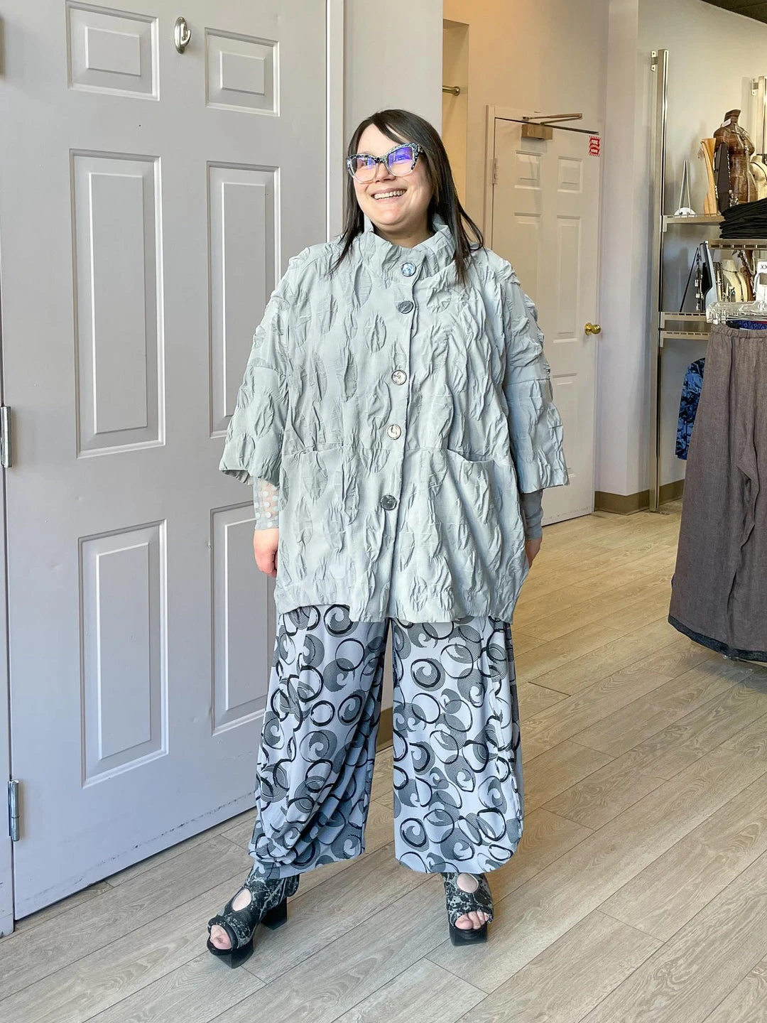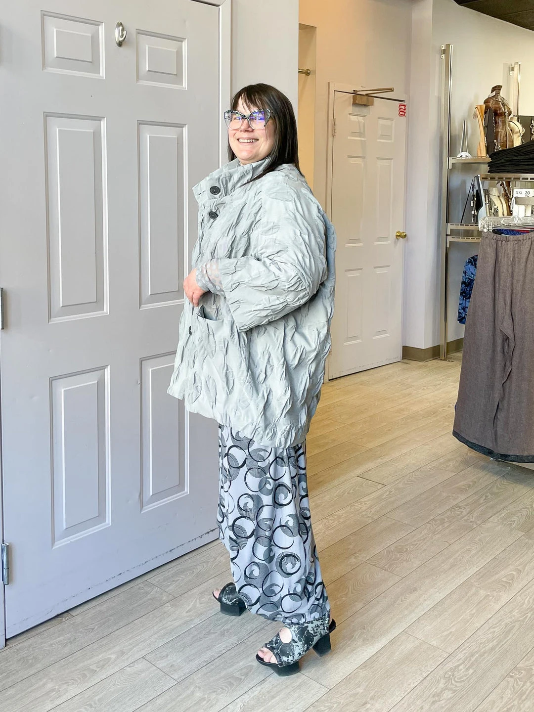 Andrea (size 14/16, 5’3″) wears size L.