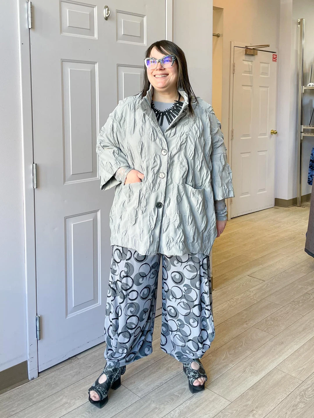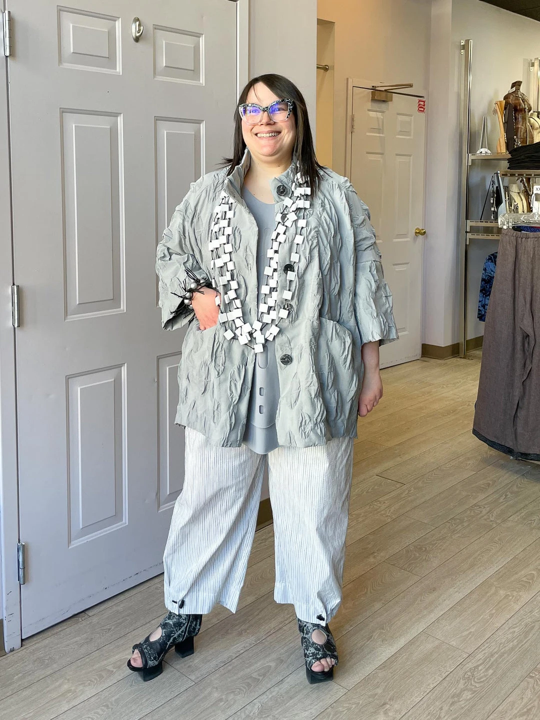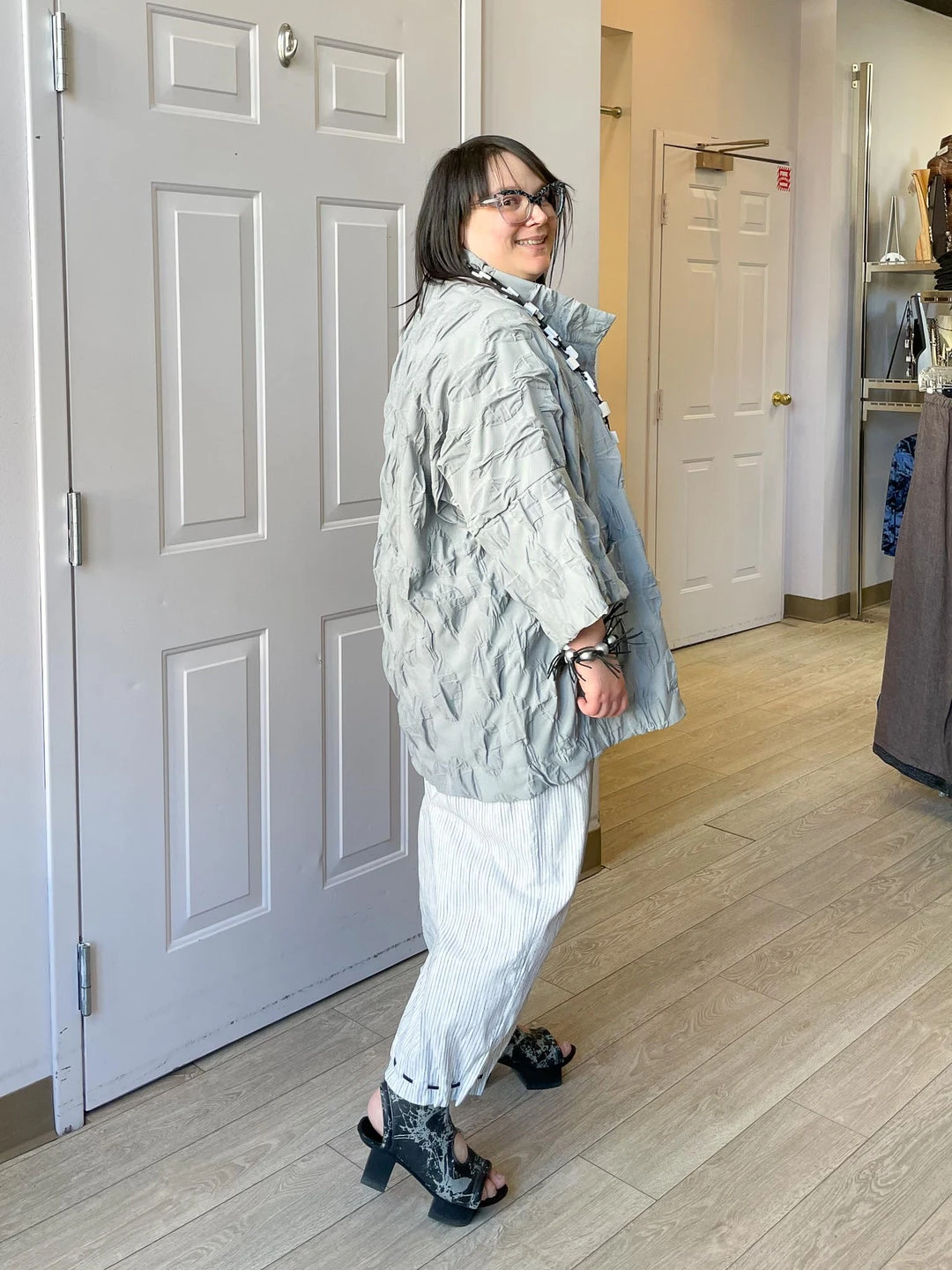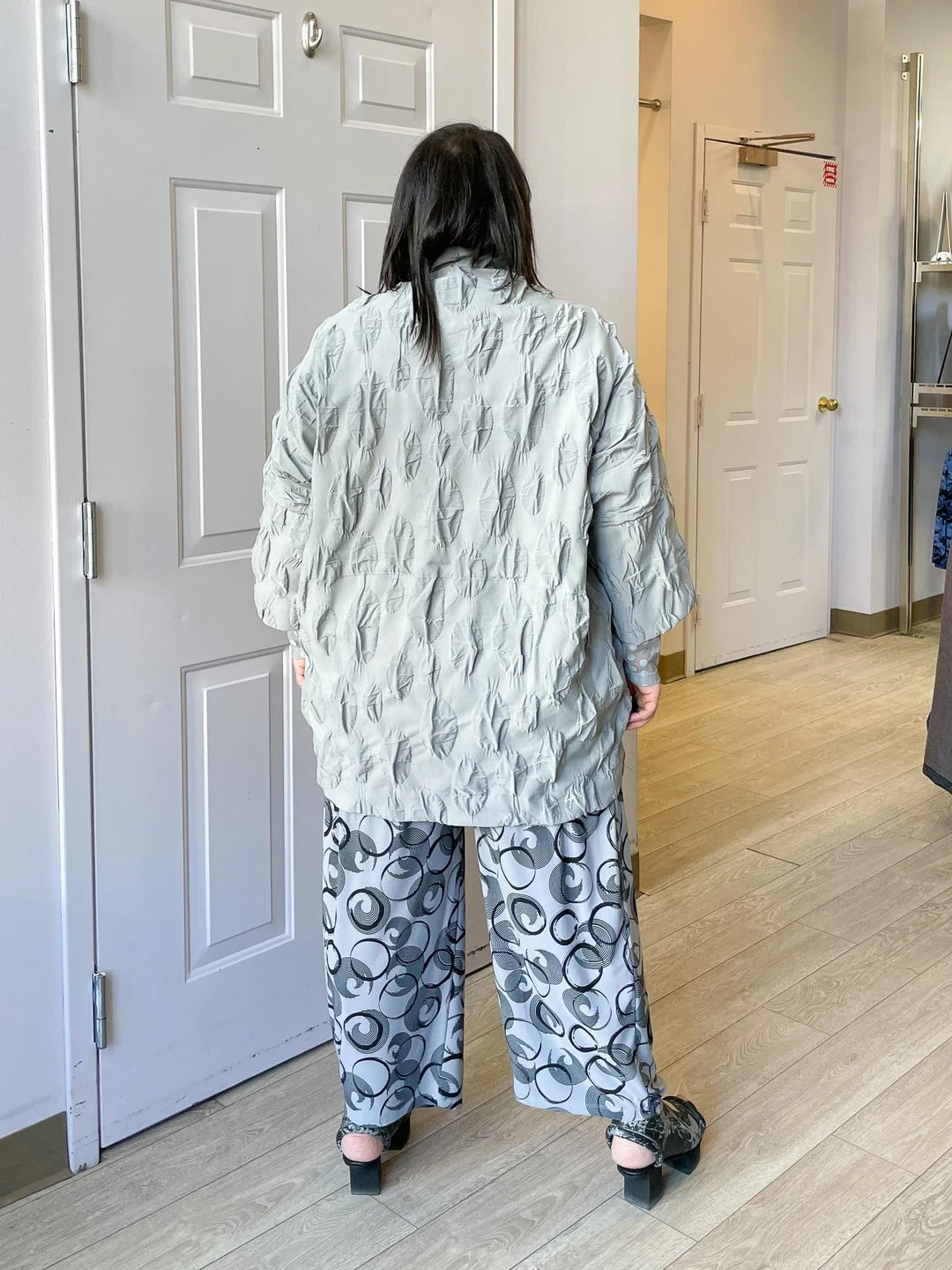 Andrea (size 14/16, 5’3″) wears size L.