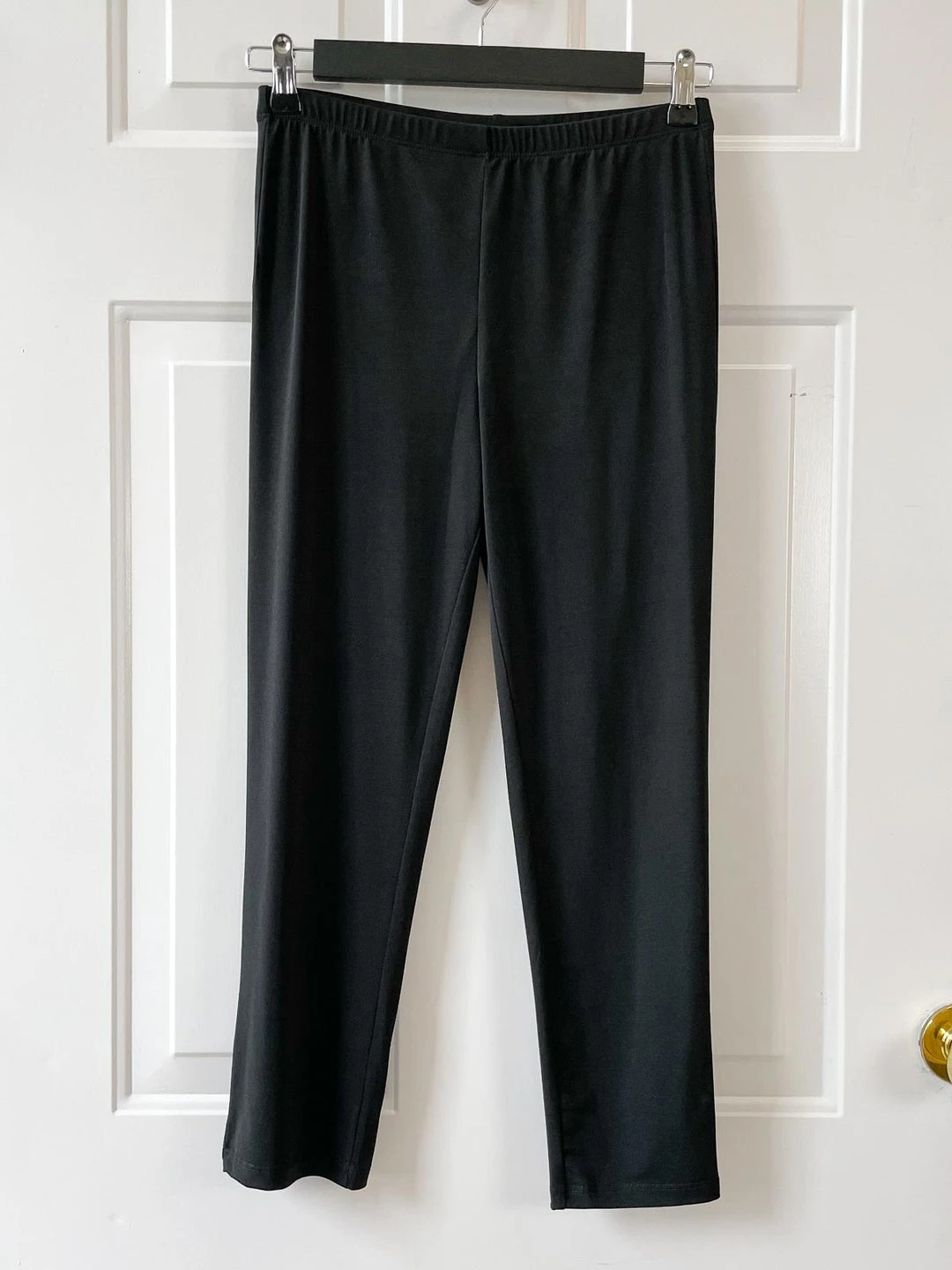 The Donna Legging is a warm weather essential with a cropped length and easy stretch pull on waist. Kozan’s Black Vogue fabric is a solid stretch jersey knit, great for travel.