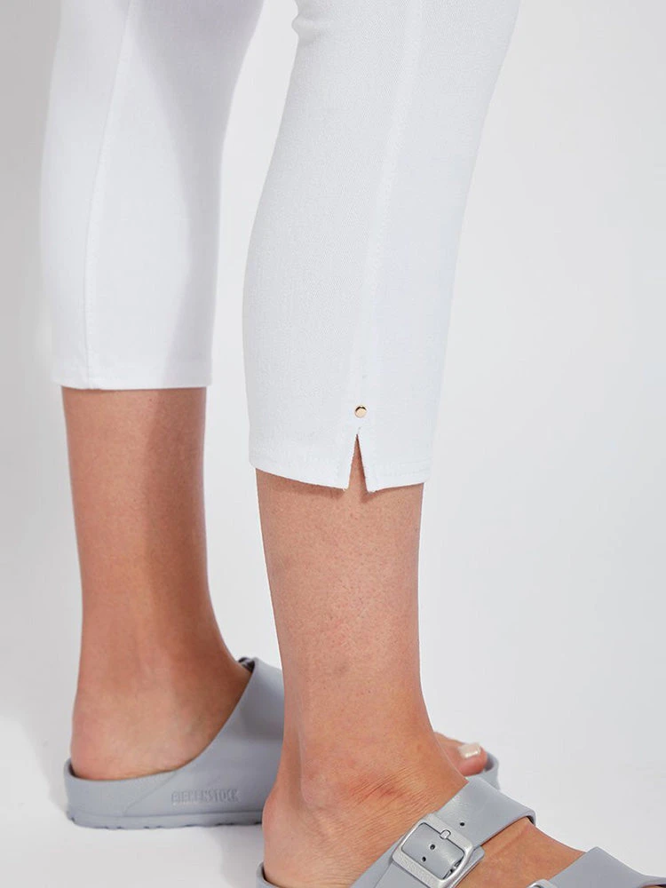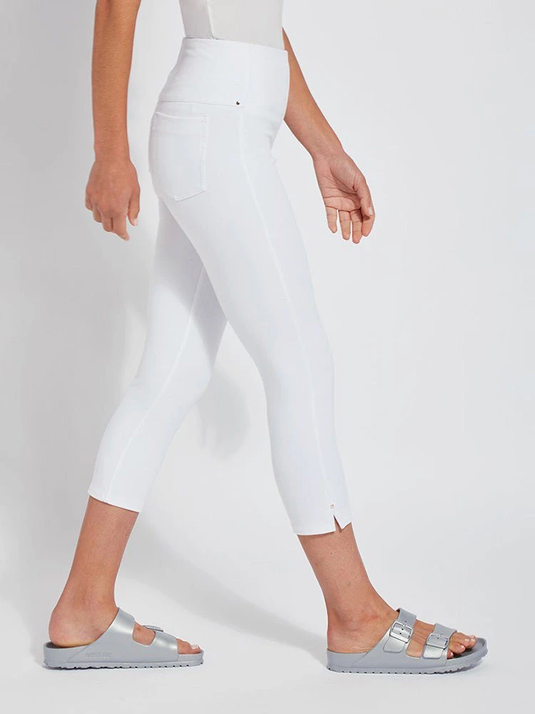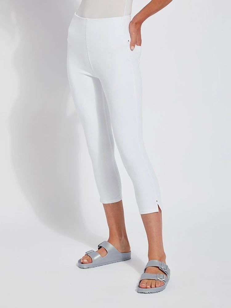 A foundational warm-weather essential, the Toothpick Capri is a body-hugging crop crafted from eco-friendly “Cool”-ing Knit Denim – a fabric that retains its cooling effect even after multiple washes. These foundational bottoms offer a concealed patented waistband, side hem slits and strategically placed back pockets with shiny, light-gold metal studs. Pull them on with an airy top, tie up your sneakers, and head to the park with your favorite furry companion.
