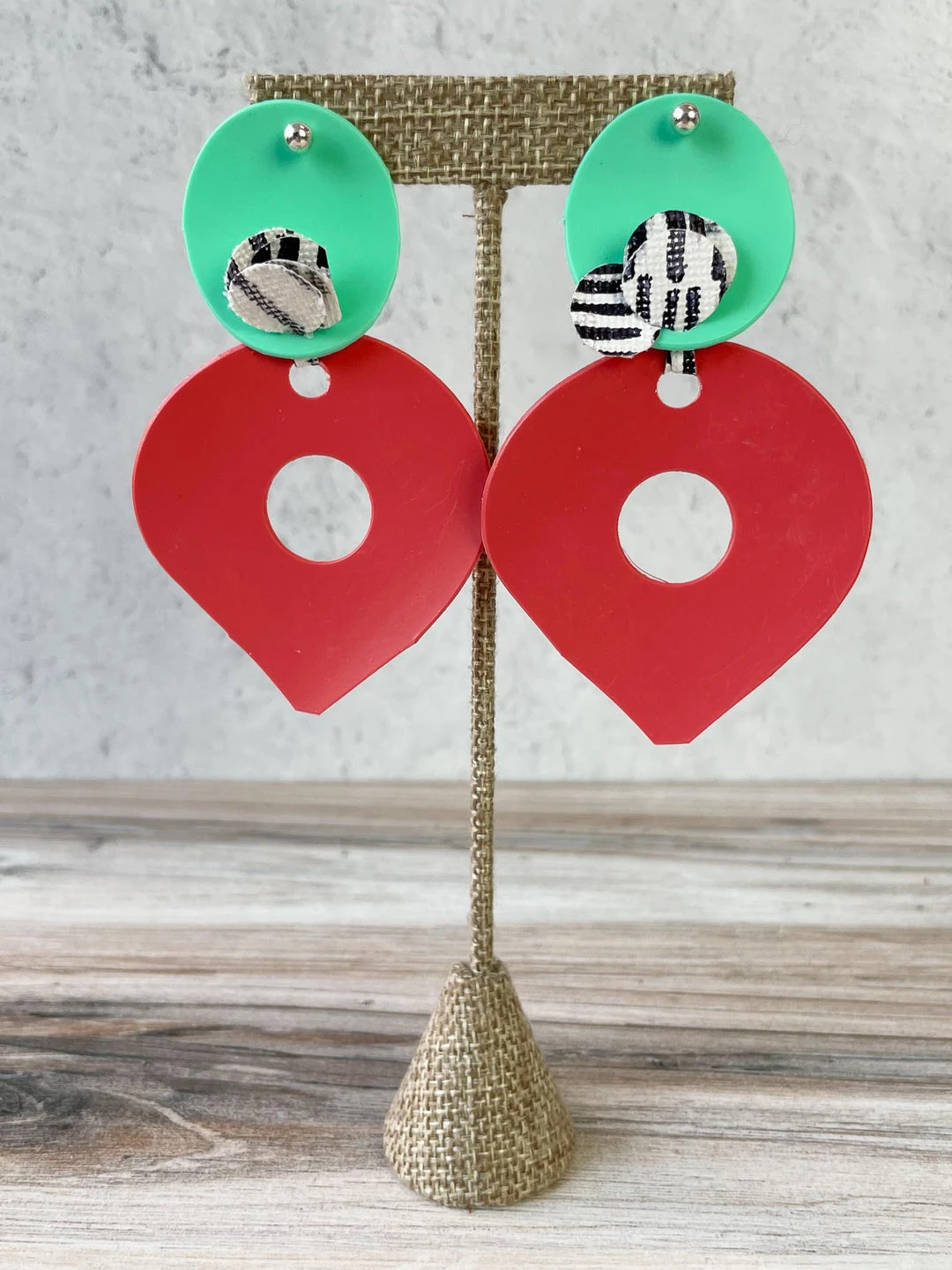 Artist Criselda Lopez creates unique wearable art using a range of upcycled materials. These large teardrop shaped drop earrings feature die cut plastic from recycled bottles, along with textured printed paper on petite silver posts.
