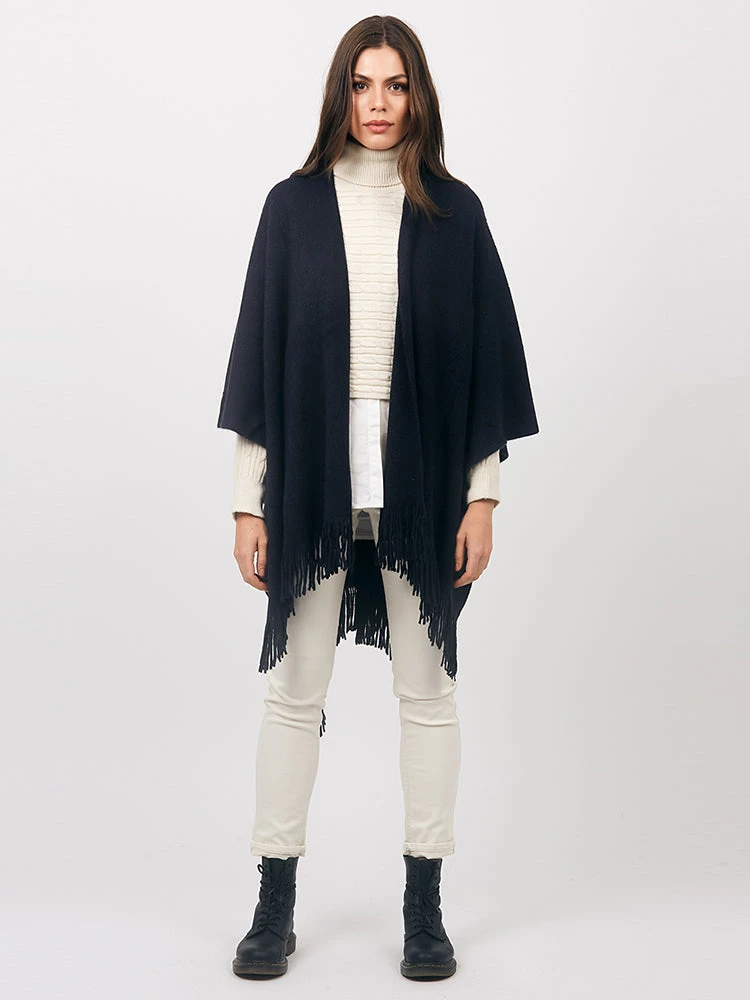 The Anthea Wrap combines classic styling with elegance for an everyday ruana style wrap that meets all your needs. A traditional fringed hemline give this wrap just the right proportions for keeping warm and cozy this season. The perfect piece to easily stash in your winter tote so it’s always ready, it’s ideal for layering all season long. We also love it for wearing around the house with loungewear when the chill is on, or adding it to your travel must-haves for your plane trips or cruises.