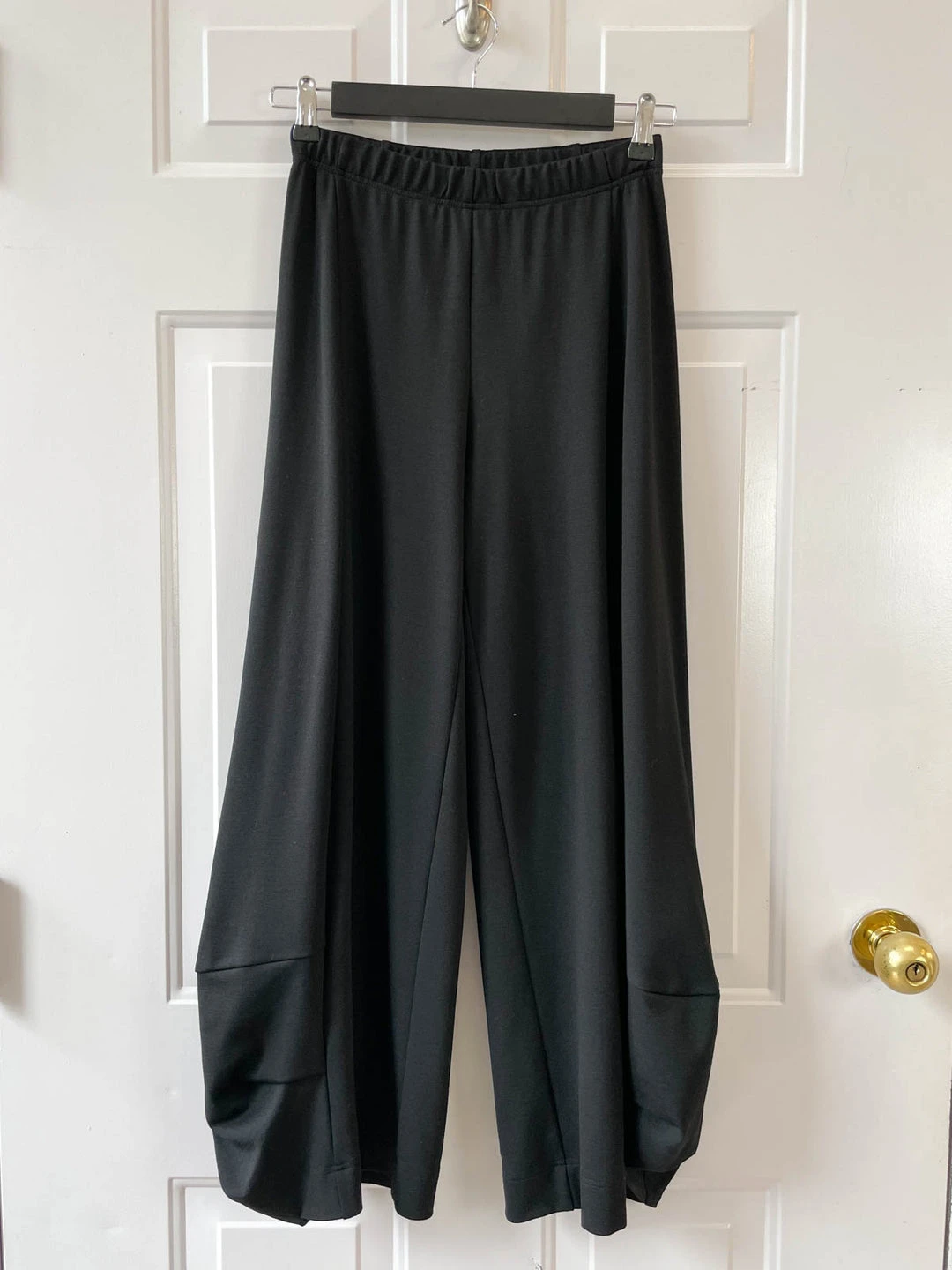 This lantern style pant from Q’Neel has seaming detail at legs creating a ballooned effect bottom. Stretch pull on waist.Â