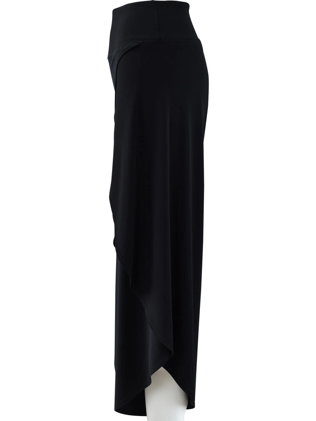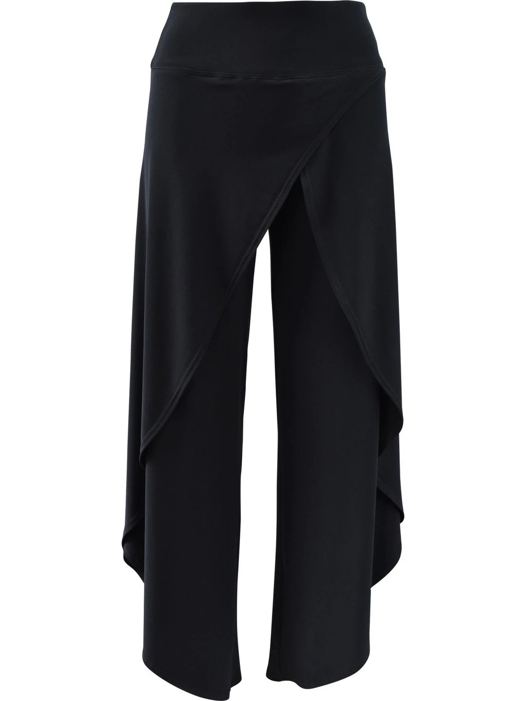 This flowy pant has a yoked waistband with front wrap detail. Cross over outer sides have a tulip look.